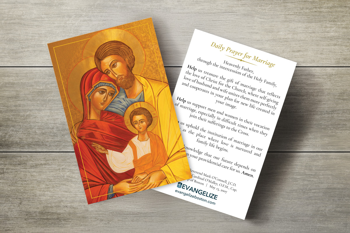 Pray this prayer daily for the vocation of marriage. This prayer card is a thoughtful gift for engaged couples and those celebrating their wedding anniversary. Dimensions: 2.50 x 4.5