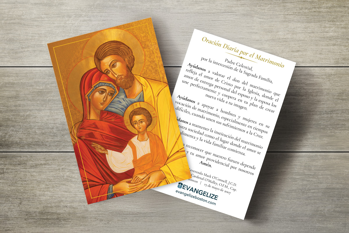 Pray this prayer daily for the vocation of marriage. This prayer card is a thoughtful gift for engaged couples and those celebrating their wedding anniversary. It asks for the intercession of the Holy Family, the model of love and self gift. Dimensions: 2.5 x 4.50. Also available in Spanish.